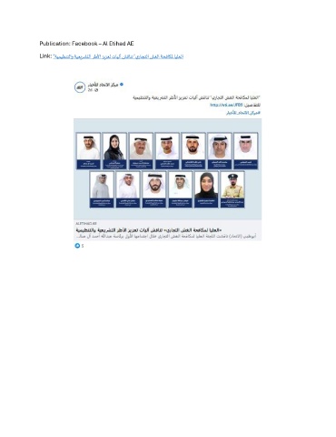Publication: Facebook – Al Etihad AE Link: "ةيميظنتلاو ةيعيرشتلا رطلأا زيزعت تايلآ شقانت "يراجتلا شغلا ةحفاكلم ايلعلا