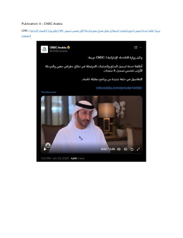 Publication: X – CNBC Arabia Link: ـل ةيتاراملإا داصتقلاا ةرازو ليكو CNBC ليجست نمضتت ىلولأا ةلحرلماو نيعم يفارغج قاطن يف ةطبترلما تاجتنلماو علسلا ليجست ةمدخ انقلطأ :ةيبرع تاجتنم 4