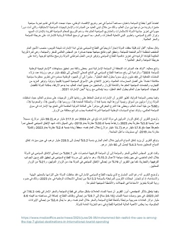 ًلاجسم ،)رلاود رايلم 59.2 ( مهرد رايلم 217.3 وحن 2024 ماع يف غلب تاراملإا ةلود يف نييلودلا راوزلا قافنإ نأ ريرقتلا حضوأو