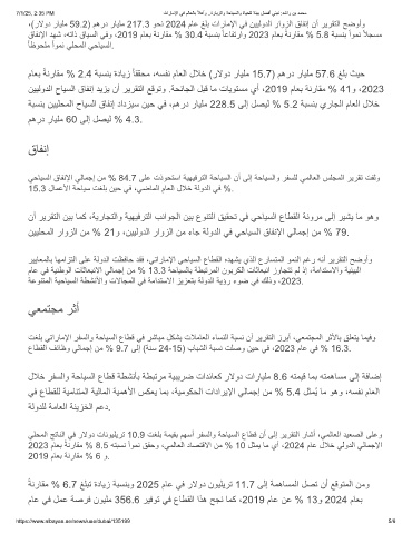 ،(رﻻود رﺎﯾﻠﻣ 59.2) مھرد رﺎﯾﻠﻣ 217.3 وﺣﻧ 2024 مﺎﻋ ﻎﻠﺑ تارﺎﻣﻹا ﻲﻓ نﯾﯾﻟودﻟا راوزﻟا قﺎﻔﻧإ نأ رﯾرﻘﺗﻟا ﺢﺿوأو