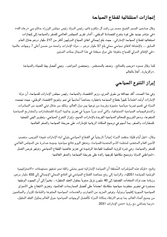 ﺔﻟود نأ ،ﺔﺣﺎﻴﺴﻠﻟ تارﺎﻣﻹا ﺲﻠﺠﻣ ﺲﻴﺋر ،ﺔﺣﺎﻴﺴﻟاو دﺎﺼﺘﻗﻻا ﺮﻳزو ،يﺮﻤﻟا قﻮﻃ ﻦﺑ ﻪﻟاﺪﺒﻋ ﺪﻛأ ،دﺪﺼﻟا اﺬﻫ ﻓو