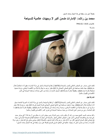 للاخ ًايئانثتسا ًءادأ ققح تاراملإا ةلود يف رفسلاو ةحايسلا عاطق نأ (WTTC) ةحايسلاو رفسلل يملاعلا سلجملا نع رداص ريرقت فشك