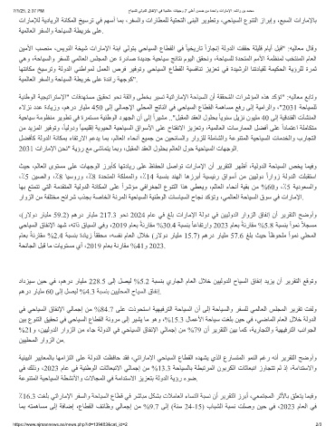 ،(رﻻود رﺎﯿﻠﻣ 59.2) ﻢھرد رﺎﯿﻠﻣ 217.3 ﻮﺤﻧ 2024 مﺎﻋ ﻲﻓ ﻎﻠﺑ تارﺎﻣﻹا ﺔﻟود ﻲﻓ ﻦﯿﯿﻟوﺪﻟا راوﺰﻟا قﺎﻔﻧإ نأ ﺮﯾﺮﻘﺘﻟا ﺢﺿوأو