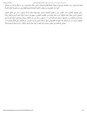 ﻲﻠﺤﻤﻟا ﺞﺗﺎﻨﻟا ﻲﻓ رﻻود نﻮﯿﻠﯾﺮﺗ 10.9 ﺖﻐﻠﺑ ﺔﻤﯿﻘﺑ ﻢﮭﺳأ ﺮﻔﺴﻟاو ﺔﺣﺎﯿﺴﻟا عﺎﻄﻗ نأ ﻰﻟإ ﺮﯾﺮﻘﺘﻟا رﺎﺷأ ،ﻲﻤﻟﺎﻌﻟا ﺪﯿﻌﺼﻟا ﻰﻠﻋو