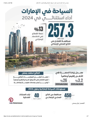 7/1/25, 2:38 PM مﻟﺎﻌﻟﺎﺑ ﻼھأ ..حﺎﯾﺳﻟا قﺎﻔﻧإ ﻲﻓ ﺔﯾﻣﻟﺎﻋ تﺎﮭﺟو 7 ﻰﻠﻋأ نﻣﺿ تارﺎﻣﻹا :دﺷار نﺑ دﻣﺣﻣ ADVERTISEMENT https://al-ain.com/article/mohammed-bin-rashid-uae-among-top-7-global 4/7