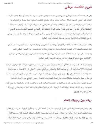 ،مﻟﺎﻌﻟا ىوﺗﺳﻣ ﻰﻠﻋ تﺎﮭﺟوﻟا زرﺑﺄﻛ ﺎﮭﺗدﺎﯾر ﻰﻠﻋ ظﺎﻔﺣﻟا لﺻاوﺗ تارﺎﻣﻹا نأ رﯾرﻘﺗﻟا رﮭظأ ،ﺔﯾﻟودﻟا ﺔﺣﺎﯾﺳﻟا صﺧﯾ ﺎﻣﯾﻓو