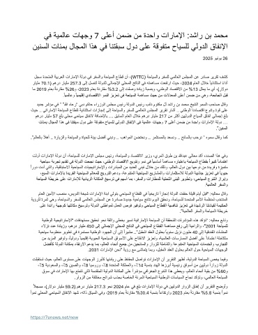 لجس ةدحتملا ةيبرعلا تاراملإا ةلود يف رفسلاو ةحايسلا عاطق نأ ،) WTTC ( ةحايسلاو رفسلل يملاعلا سلجملا نع رداص ريرقت فشك