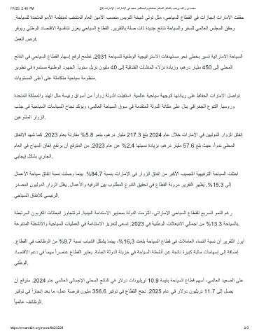 ﺞﺗﺎﻧﻟا ﻲﻓ ﻲﺣﺎﯾﺳﻟا عﺎطﻘﻟا مﺎﮭﺳإ ﻊﻓرﻟ ﺢﻣطﺗ .2031 ﺔﺣﺎﯾﺳﻠﻟ ﺔﯾﻧطوﻟا ﺔﯾﺟﯾﺗارﺗﺳﻻا تﺎﻓدﮭﺗﺳﻣ وﺣﻧ ﻰطﺧﺑ رﯾﺳﺗ ﺔﯾﺗارﺎﻣﻹا ﺔﺣﺎﯾﺳﻟا