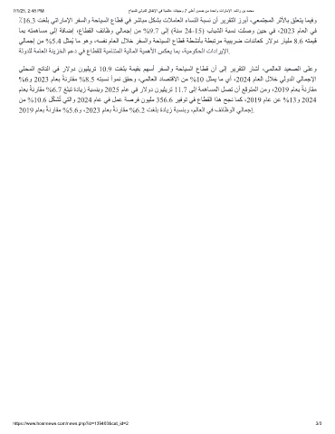 ٪16.3 ﺖﻐﻠﺑ ﻲﺗارﺎﻣﻹا ﺮﻔﺴﻟاو ﺔﺣﺎﯿﺴﻟا عﺎﻄﻗ ﻲﻓ ﺮﺷﺎﺒﻣ ﻞﻜﺸﺑ تﻼﻣﺎﻌﻟا ءﺎﺴﻨﻟا ﺔﺒﺴﻧ نأ ﺮﯾﺮﻘﺘﻟا زﺮﺑأ ،ﻲﻌﻤﺘﺠﻤﻟا ﺮﺛﻷﺎﺑ ﻖﻠﻌﺘﯾ ﺎﻤﯿﻓو