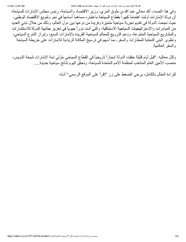 ،ﺲﯾﻮﻨﻟا ﺔﺨﯿﺷ تارﺎﻣﻹا ﺔﻨﺑا ﻲﻟﻮﺘﺑ ﻲﺣﺎﯿﺴﻟا عﺎﻄﻘﻟا ﻲﻓ ﺎﯿﺨﯾرﺎﺗ ازﺎﺠﻧإ ﺔﻟوﺪﻟا ﺖﻘﻘﺣ ﺔﻠﯿﻠﻗ مﺎﯾأ ﻞﺒﻗ" :ﮫﯿﻟﺎﻌﻣ لﺎﻗو