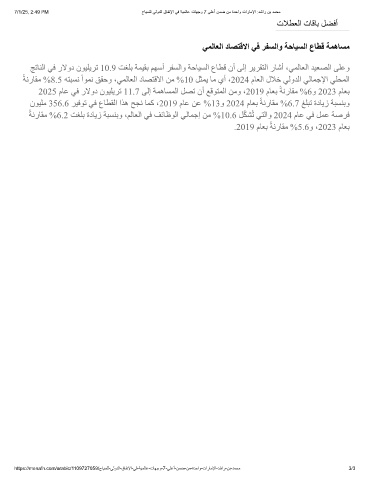 ﺞﺗﺎﻨﻟا ﻲﻓ رﻻود نﻮﯿﻠﯾﺮﺗ 10.9 ﺖﻐﻠﺑ ﺔﻤﯿﻘﺑ ﻢﮭﺳأ ﺮﻔﺴﻟاو ﺔﺣﺎﯿﺴﻟا عﺎﻄﻗ نأ ﻰﻟإ ﺮﯾﺮﻘﺘﻟا رﺎﺷأ ،ﻲﻤﻟﺎﻌﻟا ﺪﯿﻌﺼﻟا ﻰﻠﻋو