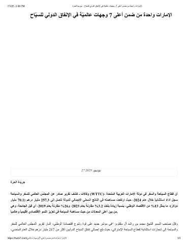 7/1/25, 2:49 PM ةرﺣﻟا ةدﯾرﺟ - حﺎّﯾﺳﻠﻟ ﻲﻟودﻟا قﺎﻔﻧﻹا ﻲﻓ ﺔّﯾﻣﻟﺎﻋ تﺎﮭﺟو 7 ﻰﻠﻋأ نﻣﺿ نﻣ ةدﺣاو تارﺎﻣﻹا
