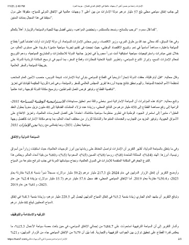 ،2031 ﺔﺣﺎﯿﺴﻠﻟ ﺔﯿﻨطﻮﻟا ﺔﯿﺠﯿﺗاﺮﺘﺳﻻا تﺎﻓﺪﮭﺘﺴﻣ ﻖﯿﻘﺤﺗ ﻮﺤﻧ ﺔﻘﺛاو ﻰﻄﺨﺑ ﺮﯿﺴﺗ ﺔﯿﺗارﺎﻣﻹا ﺔﺣﺎﯿﺴﻟا نأ تاﺮﺷﺆﻤﻟا هﺬھ ﺪﻛﺆﺗ“ :ﮫﯿﻟﺎﻌﻣ ﻊﺑﺎﺗو