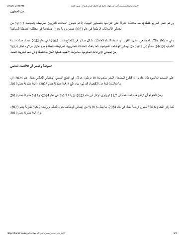 يأ ،2024 مﺎﻋ لﻼﺧ ﻲﻤﻟﺎﻌﻟا ﻲﻟﺎﻤﺟﻹا ﻲﻠﺤﻤﻟا ﺞﺗﺎﻨﻟا ﻲﻓ رﻻود نﻮﯿﻠﯾﺮﺗ 10.9ـﺑ ﻢھﺎﺳ ﺮﻔﺴﻟاو ﺔﺣﺎﯿﺴﻟا عﺎﻄﻗ نأ ﺮﯾﺮﻘﺘﻟا ﻦّﯿﺑ ،ﻲﻤﻟﺎﻌﻟا ﺪﯿﻌﺼﻟا ﻰﻠﻋ