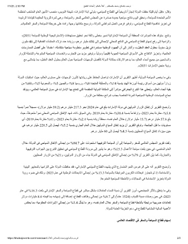 ،(2031 ﺔﺣﺎﯿﺴﻠﻟ ﺔﯿﻨطﻮﻟا ﺔﯿﺠﯿﺗاﺮﺘﺳﻻا) تﺎﻓﺪﮭﺘﺴﻣ ﻖﯿﻘﺤﺗ ﻮﺤﻧ ﺔﻘﺛاو ﻰﻄﺨﺑ ﺮﯿﺴﺗ ﺔﯿﺗارﺎﻣﻹا ﺔﺣﺎﯿﺴﻟا نأ ﺔﻘﻘﺤﻤﻟا تاﺮﺷﺆﻤﻟا هﺬھ ﺪﻛﺆﺗ» :ﻊﺑﺎﺗو