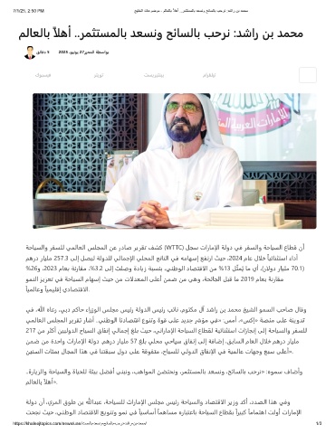 ﺔﺣﺎﻴﺴﻟاو ﺮﻔﺴﻠﻟ ﻲﻤﻟﺎﻌﻟا ﺲﻠﺠﻤﻟا ﻦﻋ ردﺎﺻ ﺮﻳﺮﻘﺗ ﻒﺸﻛ (WTTC) ﻞﺠﺳ تارﺎﻣإلا ﺔﻟود ﻲﻓ ﺮﻔﺴﻟاو ﺔﺣﺎﻴﺴﻟا عﺎﻄﻗ نأ