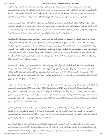 ،(رالود رﺎﻴﻠﻣ 59.2) ﻢﻫرد رﺎﻴﻠﻣ 217.3 ﻮﺤﻧ 2024 مﺎﻋ ﻲﻓ ﻎﻠﺑ تارﺎﻣإلا ﺔﻟود ﻲﻓ ﻦﻴﻴﻟوﺪﻟا راوﺰﻟا قﺎﻔﻧإ نأ ﺮﻳﺮﻘﺘﻟا ﺢﺿوأو