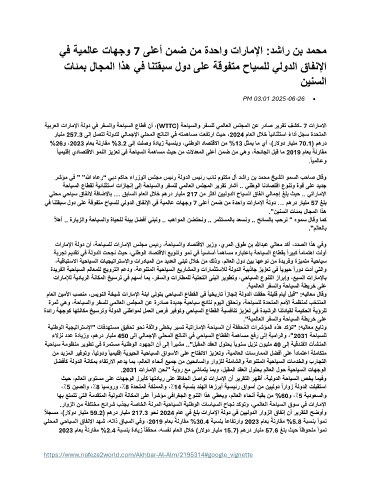 ةيبرعلا تاراملإا ةلود يف رفسلاو ةحايسلا عاطق نأ ،) WTTC ( ةحايسلاو رفسلل يملاعلا سلجملا نع رداص ريرقت فشك 7 - تاراملاا