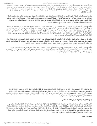 مﺎﻌﻟا لﻼﺧ ،ﺔﻟوﺪﻟا ﻲﻓ ﻲﺣﺎﯿﺴﻟا قﺎﻔﻧﻹا ﻲﻟﺎﻤﺟإ ﻦﻣ %84.7 ﻰﻠﻋ تذﻮﺤﺘﺳا ﺔﯿﮭﯿﻓﺮﺘﻟا ﺔﺣﺎﯿﺴﻟا نأ ﻰﻟإ ﺔﺣﺎﯿﺴﻟاو ﺮﻔﺴﻠﻟ ﻲﻤﻟﺎﻌﻟا ﺲﻠﺠﻤﻟا ﺮﯾﺮﻘﺗ ﺖﻔﻟو