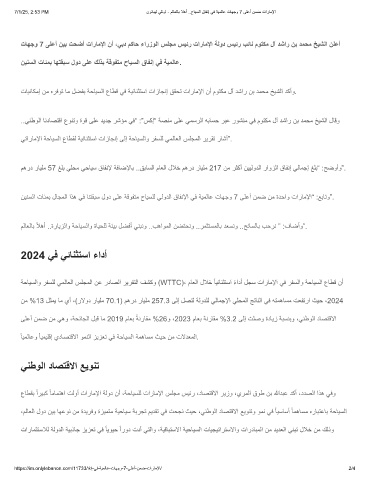 ﻲﺗارﺎﻣﻹا ﺔﺣﺎﯾﺳﻟا عﺎطﻘﻟ ﺔﯾﺋﺎﻧﺛﺗﺳا تازﺎﺟﻧإ ﻰﻟإ ﺔﺣﺎﯾﺳﻟاو رﻔﺳﻠﻟ ﻲﻣﻟﺎﻌﻟا سﻠﺟﻣﻟا رﯾرﻘﺗ رﺎﺷأ”.