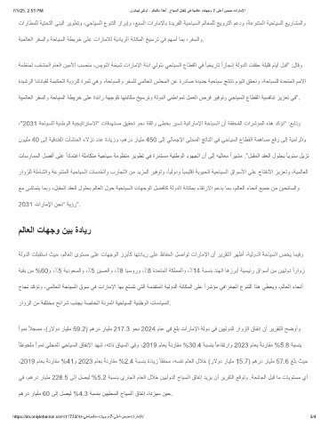 ،″2031 ﺔﺣﺎﯾﺳﻠﻟ ﺔﯾﻧطوﻟا ﺔﯾﺟﯾﺗارﺗﺳﻻا“ تﺎﻓدﮭﺗﺳﻣ ﻖﯾﻘﺣﺗ وﺣﻧ ﺔﻘﺛاو ﻰطﺧﺑ رﯾﺳﺗ ﺔﯾﺗارﺎﻣﻹا ﺔﺣﺎﯾﺳﻟا نأ ﺔﻘﻘﺣُﻣﻟا تارﺷؤﻣﻟا هذھ دﻛؤﺗ“ :ﻊﺑﺎﺗو