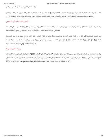 2031 تارﺎﻣﻹا نﺣﻧ" ﺔﯾؤر ﻊﻣ ﺎًﯾﺷﺎﻣﺗ ،مﻟﺎﻌﻟا ﻲﻓ ﺔﯾﺣﺎﯾﺳﻟا تﺎﮭﺟوﻟا لﺿﻓأ نﻣ ةدﺣاوﻛ تارﺎﻣﻹا ﺔﻧﺎﻛﻣ زﯾزﻌﺗ".