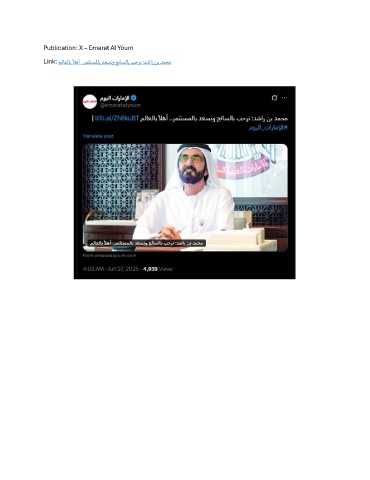 Publication: X – Emarat Al Youm ً Link: ملاعلاب لاهأ ..رمثتسلماب دعسنو حئاسلاب بحرن :دشار نب دمحم