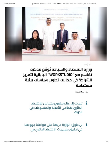 7/2/25, 4:01 PM ﻊﻣ مھﺎﻔﺗ ةرﻛذﻣ ﻊ ّ ﻗوُﺗ ﺔﺣﺎﯾﺳﻟاو دﺎﺻﺗﻗﻻا ةرازو "WORKSTUDIO" ﺔﻣادﺗﺳﻣ ﺔﯾﺋﯾﺑ تﺎﺳﺎﯾﺳ رﯾوطﺗ تﻻﺎﺟﻣ ﻲﻓ ﺔﻛارﺷﻟا زﯾزﻌﺗﻟ ﺔﯾﻧﺎﺑﺎﯾﻟا