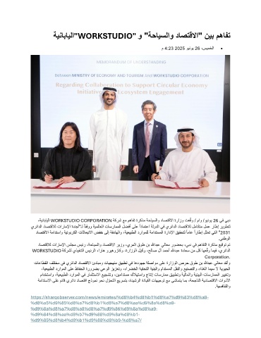 WORKSTUDIO ةكرشل يذيفنتلا سيئرلا ،اراه وريهوزاكو ،ةرازولا ليكو ،حلاص لآ دمحأ اللهدبع ةداعس نم لك اهع ّ قو اميف ،يرئادلا