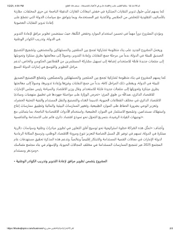 • ﺔﻴﻨﻃﻮﻟا رداﻮﻜﻟا ﺐﻳرﺪﺗو ﺮﻳوﺪﺘﻟا ةدﺎﻋإل ﻖﻓاﺮﻣ ﺮﻳﻮﻄﺗ ﻦﻤﻀﺘﻳ عورشﻤﻟا