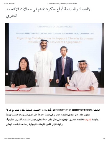 ﺔﻛرﺷ ﻊﻣ مھﺎﻔﺗ ةرﻛذﻣ ﺔﺣﺎﯾﺳﻟاو دﺎﺻﺗﻗﻻا ةرازو تﻌﻗو WORKSTUDIO CORPORATION ،ﺔﯾﻧﺎﺑﺎﯾﻟا