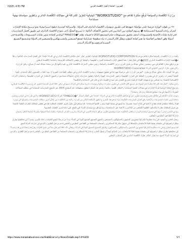 ﺔﯾﺋﯾﺑ تﺎﺳﺎﯾﺳ رﯾوطﺗو يرﺋادﻟا دﺎﺻﺗﻗﻻا تﻻﺎﺟﻣ ﻲﻓ ﺔﻛارﺷﻟا زﯾزﻌﺗﻟ ﺔﯾﻧﺎﺑﺎﯾﻟا "WORKSTUDIO" ﻊﻣ مھﺎﻔﺗ ةرﻛذﻣ ﻊﻗوُﺗ ﺔﺣﺎﯾﺳﻟاو دﺎﺻﺗﻗﻻا ةرازو