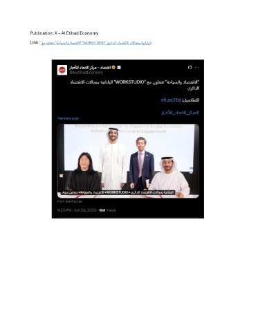 Publication: X – Al Etihad Economy Link: " عم نواعتت "ةحايسلاو داصتقلاا "WORKSTUDIO" يرئادلا داصتقلاا تلااجمب ةينابايلا