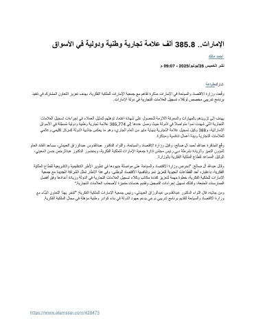 قاوسلأا يف ةيلودو ةينطو ةيراجت ةملاع فلأ 385.8 ..تاراملإا