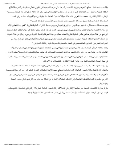 عﺎطﻘﻟ ﺔﯾﻌﯾرﺷﺗﻟاو ﺔﯾﻣﯾظﻧﺗﻟا رطﻷا رﯾوطﺗ ﻲﻓ ﺎھدوﮭﺟ ﺔﻠﺻاوﻣ ﻰﻠﻋ ﺔﺣﺎﯾﺳﻟاو دﺎﺻﺗﻗﻻا ةرازو صرﺣﺗ" :ﺢﻟﺎﺻ لآ ﷲدﺑﻋ ةدﺎﻌﺳ لﺎﻗو