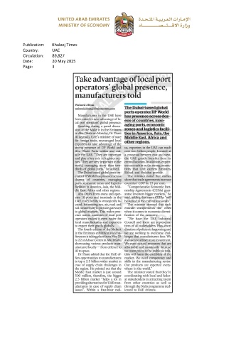 Publication: Khaleej Times Country: UAE Circulation: 89,827 Date: 20 May 2025 Page: 3