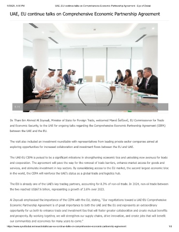 5/30/25, 4:56 PM UAE, EU continue talks on Comprehensive Economic Partnership Agreement - Eye of Dubai