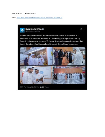 Publication: X – Media Office Link: Media Office: Hamdan bin Mohammed witnesses launch of the ‘UAE Future 50’