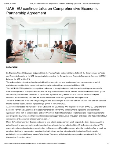 5/30/25, 4:39 PM UAE, EU continue talks on Comprehensive Economic Partnership Agreement – The Gulf Time Newspaper