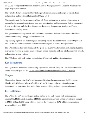 5/30/25, 4:39 PM EU, UAE Begin FTA Negotiations To Deepen Economic Ties