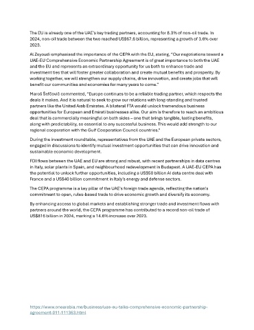 in Italy, solar plants in Spain, and neighbourhood redevelopment in Budapest. A UAE-EU CEPA has
