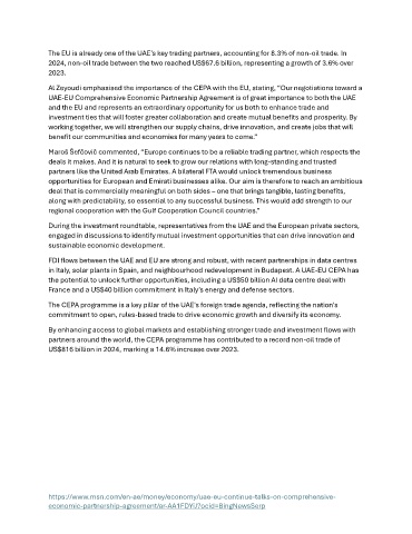 in Italy, solar plants in Spain, and neighbourhood redevelopment in Budapest. A UAE-EU CEPA has