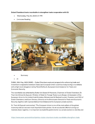 investment cooperation between Dubai and European Union countries today during a roundtable