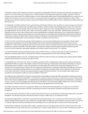 credit insurance solutions. By helping UAE businesses compete more effectively on the global stage, ECI plays a vital role in accelerating non-oil