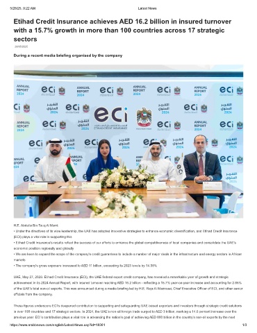UAE, May 27, 2025: Etihad Credit Insurance (ECI), the UAE federal export credit company, has revealed a remarkable year of growth and strategic