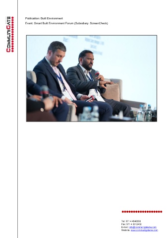 Publication: Built Environment Event: Smart Built Environment Forum (Subsidiary: ScreenCheck) Tel: 971 4 4546093 Fax: 971 4 3612432 E-mail: info@communigateme.com Website: www.communigateme.com