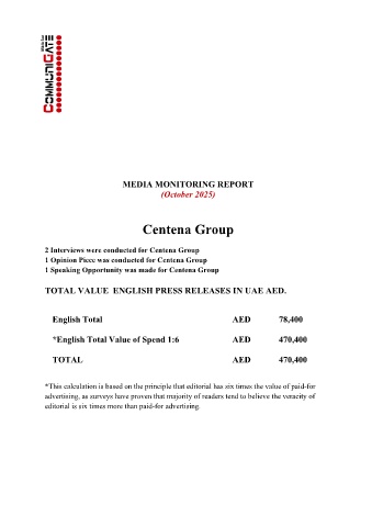 TOTAL VALUE ENGLISH PRESS RELEASES IN UAE AED.