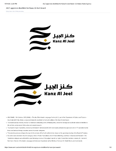 https://www.wam.ae/en/article/bm6n6x5-alc-approves-shortlists-for-kanz-jeel-award 1/2