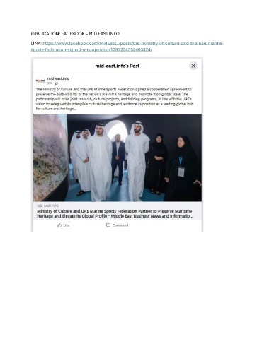 PUBLICATION: FACEBOOK – MID EAST INFO LINK: https://www.facebook.com/MidEast.i/posts/the-ministry-of-culture-and-the-uae-marine- sports-federation-signed-a-cooperatio/1397234352403324/