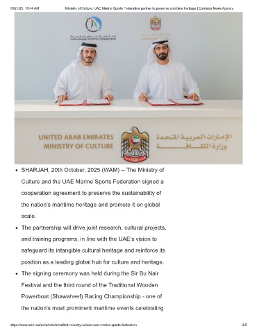 10/21/25, 10:44 AM Ministry of Culture, UAE Marine Sports Federation partner to preserve maritime heritage | Emirates News Agency